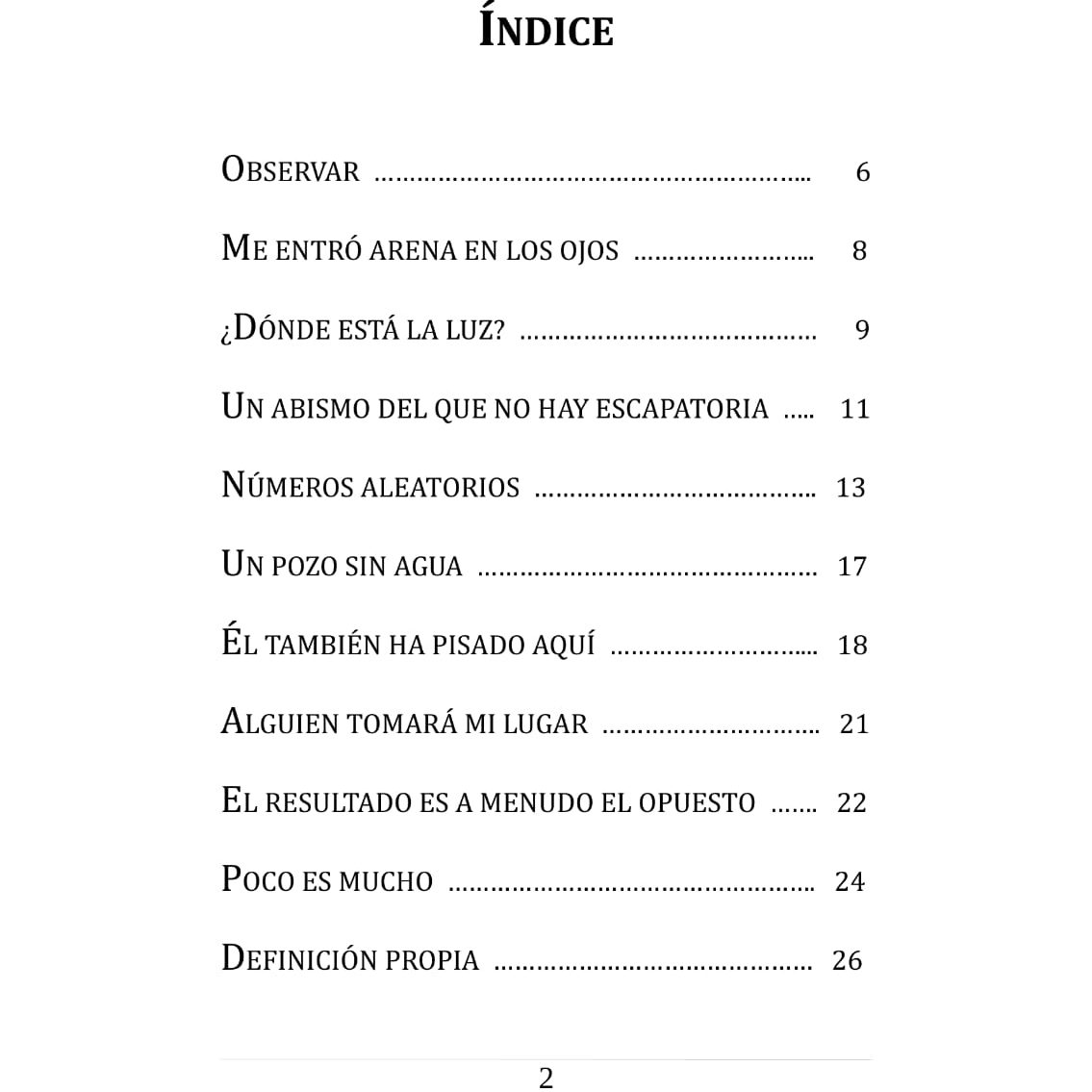 Tiene muchos contenidos. Contiene experiencias y pensamientos de otras personas (como el amor). El objetivo es que puedan saber más sobre este mundo. Espero que mi libro les pueda ayudar.